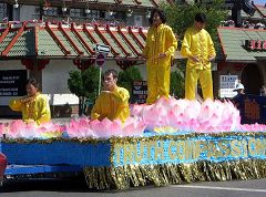 ![]() 法轮功学员的队伍充满东方神韵 |