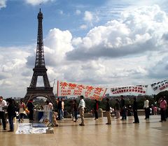 2006年8月27日周日下午,法国法轮功学员在著名的巴黎人权广场上揭露中共对法轮功学员长达7年的群体灭绝式的残酷迫害和活体摘取法轮功学员器官的野蛮罪行,并声援被中共非法关押的中国维权律师高智晟。