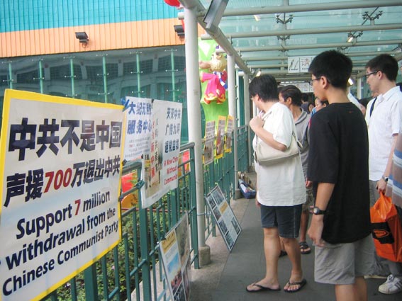![]() 看了展板后,人们急着要知道更多法轮功的真相 |