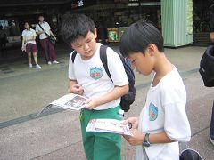 ![]() 学生拿到中国法轮功学员被迫害的资料,感到震惊 |