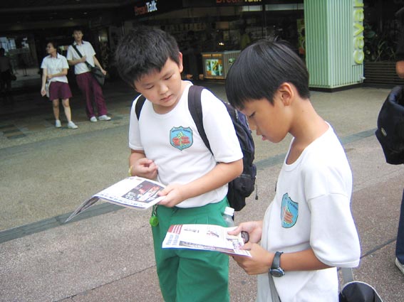 我们也到牛车水,也就是唐人街摆展板发资料讲真相,那里边有着众多的华人,因受谎言欺骗而对法轮功有着极大偏见及仇恨的华人。记的有一次,有个华人把展板拿下来用脚踩,有的骂,还有中国人也跟着你一句,他一句,引来了许多警察,围的水泄不通。警察来了把那些滋事的民众请走。在讲清真相中触及到每个民众的心。