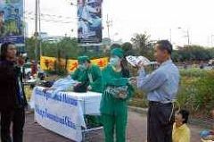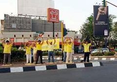 2006年7月29日下午四点半,来自印尼东爪哇省各地的法轮功学员们,聚集在泗水火车站附近五条街道交叉口的分隔岛上,用揭露中共活体摘取法轮功学员器官的行动剧展开这次活动。行动剧相当逼真,路过的行人驻足观看,经过学员说明,了解真相后的人们都谴责中共的暴行。