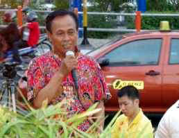 “印尼社团调查机构”主席Aruchat Djaswadi博士莅临晚会致词,呼吁制止中共迫害,更勉励法轮功学员应持续这个行动剧,让更多的世人了解共产思想的邪恶真相。