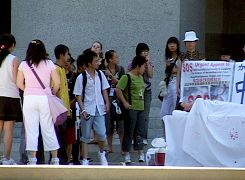 2006年7月26日,北加州法轮功学员冒着酷暑,在州府沙加缅度前举办真人模拟反酷刑展,揭露中共活摘法轮功学员器官的暴行,并呼吁加州政府能加入真相调查的行列,帮助制止中共对法轮功学员的群体灭绝。