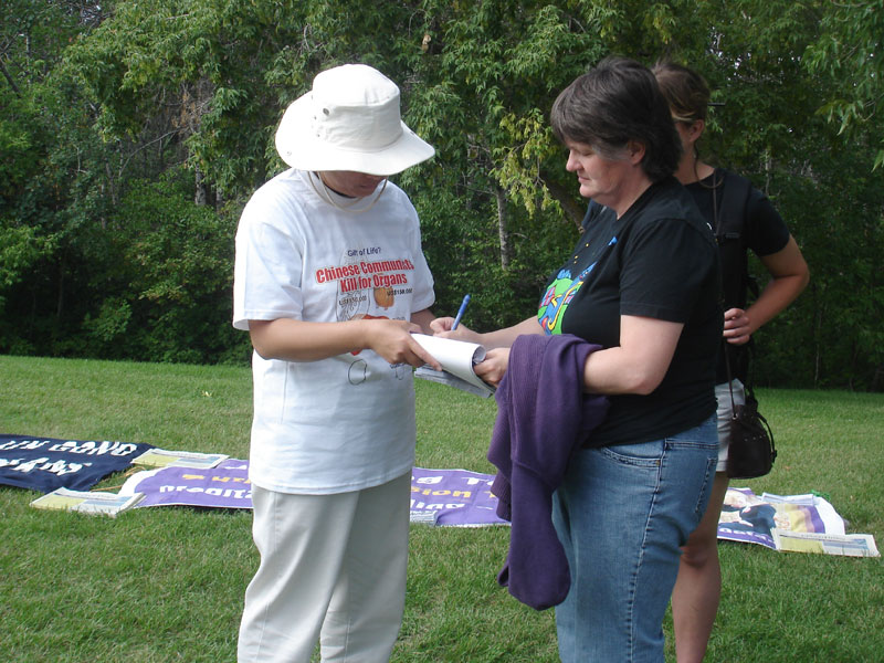 三天来,很多人知道了中共对法轮功学员的残酷迫害,纷纷表示对受害者的同情,有在谴责中共活摘法轮功学员器官罪行的抗议信上签名的,有多要资料表示回去给亲朋好友看的,有由衷感激学员们坚持不懈讲真相的,也有表示要学炼法轮功的。