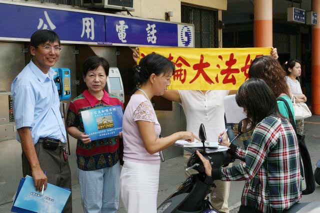 ![]() 台湾屏东法轮功学员在火车站前向往来旅客征签,吁新加坡政府立即撤销对法轮功学员的起诉 |