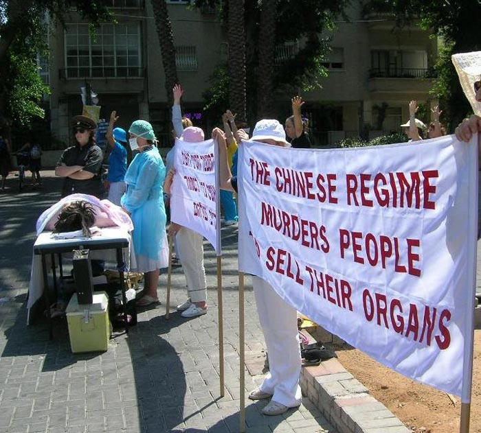 当天天气炎热,气温达摄氏三十二度至三十四度,但学员们仍然在烈日下坚持。为了让更多的以色列民众了解法轮功被迫害的真相,学员们制作了“停止迫害法轮功”、“中共活摘法轮功学员器官”等一系列的横幅。活动期间,还以模拟方式揭露了中共活体摘取法轮功学员器官的暴行。