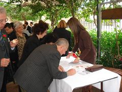 约翰神父几周前遇到了居住在当地的两位法轮功学员,在听取学员给他讲述了自从九九年七月之后中共对法轮功的残酷迫害,特别是活体摘取法轮功学员器官的暴行之后,他非常震惊。他当即就问,这么长时间了,你们在做些什么?你们做了什么呢?你们应该组成委员会,到处去找社区,找各种组织和政府去寻求帮助啊。在学员的建议下,约翰神父马上表示自己要给霍华德总理写信,并在他的教堂里面做完礼拜仪式之后把这样残酷的迫害告诉信众们,呼吁他们一起在他的公开信上签字支持。于是九月的第一个周末,在约翰神父做完他的教堂礼拜仪式之后,叫他们的信众们先安静,坐下来,他用希腊文向他们讲述了正在中国发生的这场迫害无辜法轮功学员的悲剧,并且告诉人们外面的院子里面已经摆放了一张桌子,上面有征签表人们可以签名呼吁制止迫害。当这些善良的希腊民众从教堂里出来的时候,看到在外面等候的法轮功学员,第一句话就是问在哪里可以签名。于是便出现了本文开头的那一幕。