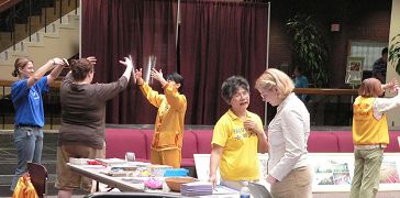 南伊利诺伊州大学艾德沃兹分校在九一一恐怖袭击事件五周年的时候举办了“十一天的和平”活动(Eleven Days of Peace),邀请不同的团体来介绍他们如何获得心灵的宁静与平和,法轮功学员是获邀团体之一,在活动的第三天做展示。谈到邀请法轮功学员的初衷,活动主办者之一,学生组织 Raise Your Voice (发出你的声音)的成员利娅(Leah)说:“我们决定请法轮功学员再次来到我们南伊利诺伊州大学,参加‘十一天的和平’活动,因为我们想向学生们展示,在不同的文化中,人们怎样看待和平、宁静,他们又是怎样获得它的。我们和法轮功学员的关系很好,所以就想到,为什么不再度请他们来呢?再次给学生们一个机会来认识法轮功,也尝试一下。”