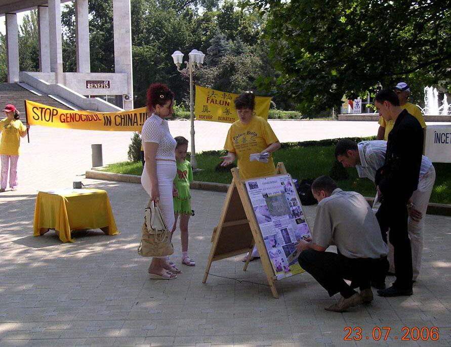 法轮大法从二零零三年开始在摩尔多瓦共和国洪传,这里的法轮功学员虽然得法比较晚,修炼时间不长,但是他们在认真修炼、身心升华的同时,与世界其它国家的法轮功学员一样,努力的向人们讲真相,揭露中共对法轮功修炼者的迫害。二零零六年,他们在首都基什耐乌(Kishinev)举行了多次活动,揭露中共迫害法轮功的罪恶,特别是中共活摘法轮功学员器官牟利的反人类罪行。下面是他们活动的部份图片。