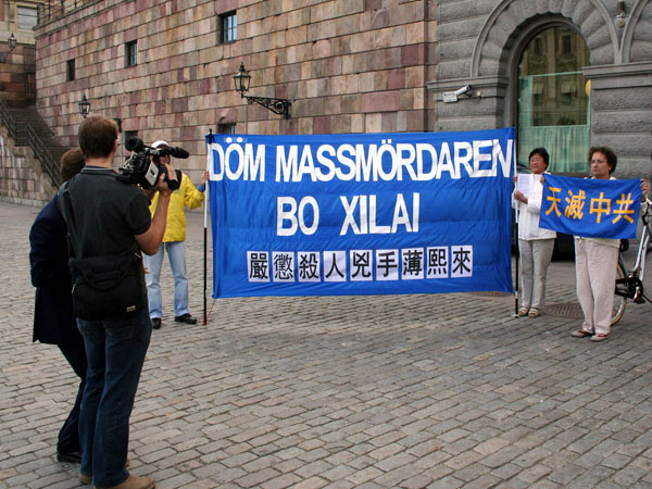 法轮功学员随后把控告薄熙来的副本分别交给了瑞典商务部长、王室的办事处。媒体如瑞典国家电视台SVT的记者采访了法轮功学员。一个记者专门拍下了横幅,但对中文横幅 “天灭中共”的意思不明白,听法轮功学员解释后含笑而去。