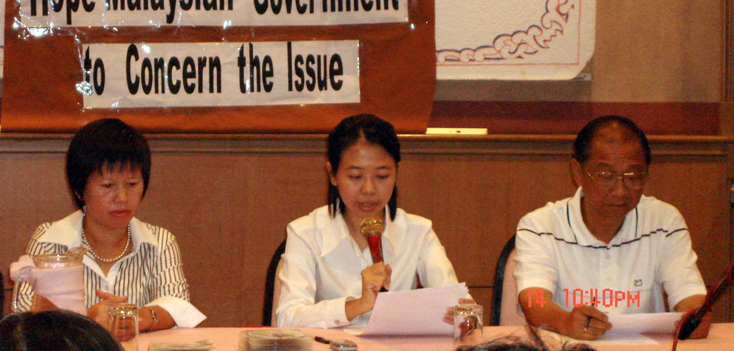 ![]() 三名入境新加坡被拒的马来西亚法轮功学员召开记者会。 |