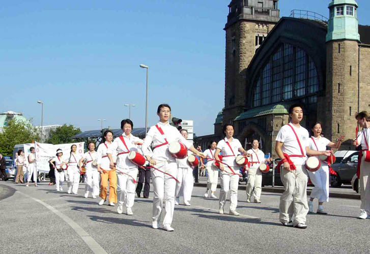 【明慧网二零零六年九月十八日】在汉堡峰会(Hamburg Summit)结束之前,欧洲法轮功学员于二零零六年九月十五日举行声援一千三百多万民众退出中共的游行活动。中午时分,浩浩荡荡的游行队伍在腰鼓队的引领下,打着横幅“没有共产党,才有新中国”、“释放高智晟”等,从汉堡的火车站穿过繁华的蒙可北科大街(Moenckebergstrasse),跨过市政厅前的处子堤(Jungfernstieg),到著名的鹅市场(Gaensemarkt),最后来到市政厅后面的汉堡商会。游行行进过程中,路人,商家纷纷翘首观看。记者随机采访了几位观众。