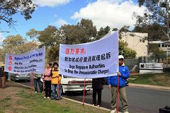 新加坡领馆前集会 澳洲学员吁撤销无理起诉(图)