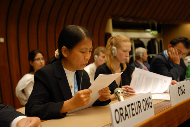 黄才华女士在联合国人权理事会人权汇报会上发言,