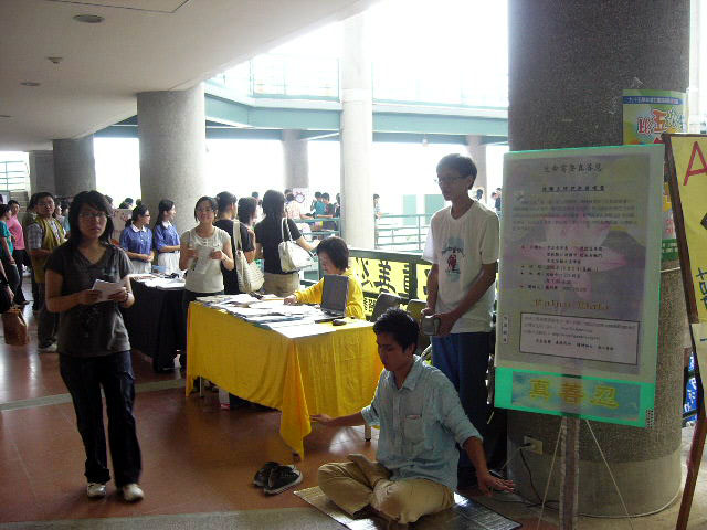 ![]() “法轮大法社团”在活动中设展位向新生洪法 |