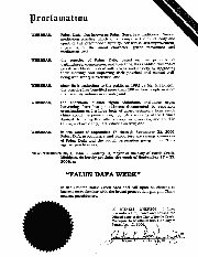 褒奖状鉴于,法轮大法又称法轮功,是一门传统的中国修炼功法,旨在通过自我提升、提高道德品质和缓慢的动功与静功,改善修炼者的心灵、身体及精神;并且鉴于,法轮大法以“真、善、忍”的原则为基础,已经使世界各地千百万的人通过提高道德品质,缓解压力和焦虑,并通过安静的炼功达到身心健康;并且 鉴于,自一九九二年李洪志先生将该功法传播给公众以来,全世界七十多个国家的一亿多人已经从中受益;并且鉴于,对法轮功学员的人权的严重践踏,包括从活着的法轮功学员身上摘取器官的行径,已经被著名的机构纪录在案,并有来自中国内部的大量的有关迫害的直接证词,这种迫害凸显了反人类罪行的事实,它影响到中国的每一个人,包括妇女和儿童,也不可避免的影响到美国国民;并且鉴于,从九月十七日到二十三日,法轮功修炼者和支持者正在让公众了解法轮功和正在中国发生的针对法轮功学员的迫害。
