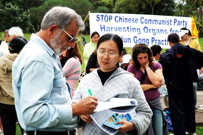 活动中,在呼吁制止中共活摘中国法轮功学员器官的请愿信上签名的市民前所未有的多,许多人阅读了手上的传单或观看了展板后就立即走上前来签名,甚至不需要更多的信息咨询。他们主动走向学员们,问道:“我怎样才能帮助你们?”
