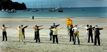 ![]() 优美如画的海边,法轮功学员展示祥和的功法 |