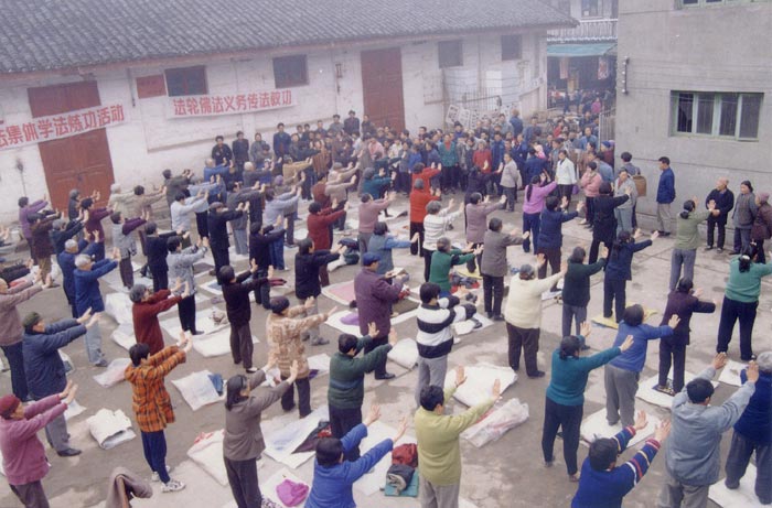 图片:1999年7.20以前东北某地大法弟子集体炼功场面