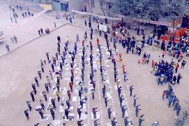 历史图片:广东省电白县九九年四二五前集体炼功一角