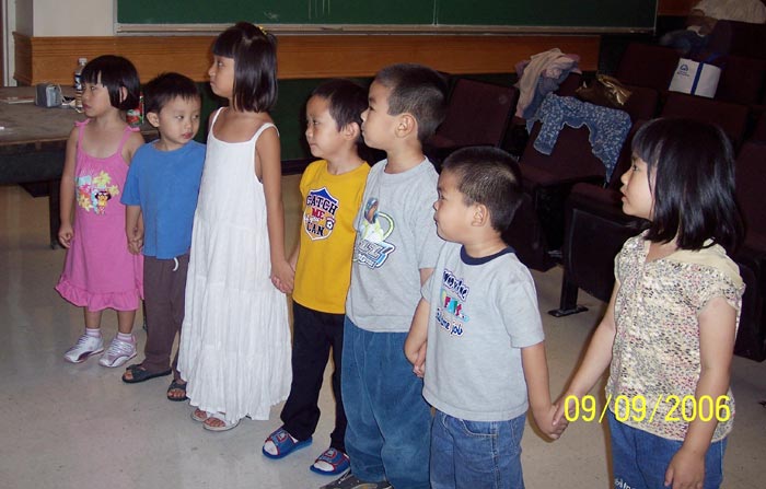 芝加哥明慧学校的孩子们在中领馆前发完真相资料后,每周六晚上,十余名平均年龄仅在五至七岁的孩子都聚集在这个教室里,朗诵、背诵《洪吟》中的诗。同是法轮大法修炼者的明慧学校教师结合着浅白的讲解,以游戏、歌曲、故事等形式,在孩子们幼小的心灵里播种下“真善忍”的法理,孩子们在这里学习知识的同时,也学会了真诚、善良、谦让等优秀品德。