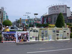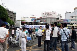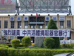 ![]() 车站前横幅强烈谴责中共活体摘取器官暴行 |