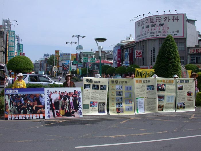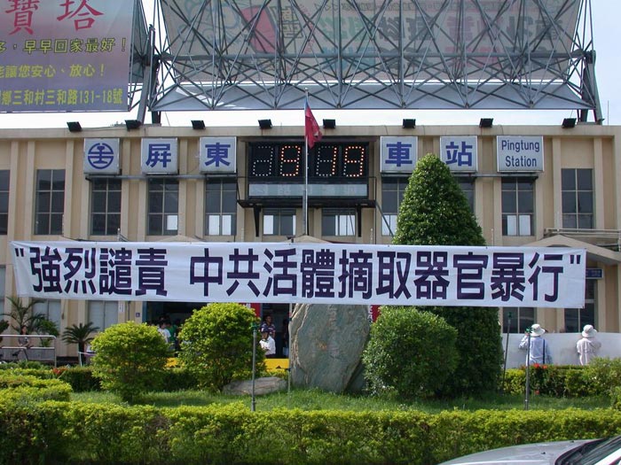 【明慧网二零零六年九月二十五日】二零零六年九月二十四日,台湾屏东县法轮功学员在人流聚集的火车站前广场,揭露中共泯灭人性“活体摘取人体器官”的暴行,呼吁民众伸出援手,共同制止这种人神共愤的反人类罪行。活动现场并有真人模拟演示摘取器官的场面,令现场民众震惊不已,纷纷谴责中共的滔天罪恶。