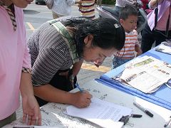 活动中,在呼吁制止中共活摘中国法轮功学员器官的请愿信上签名的市民前所未有的多,许多人阅读了手上的传单或观看了展板后就立即走上前来签名,甚至不需要更多的信息咨询。他们主动走向学员们,问道:“我怎样才能帮助你们?”