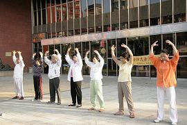 台湾中坜市公所文化艺术活动中心旁的公园,每天清晨五点钟开始,就有大批的市民在这里从事户外运动,不同的音乐此起彼落,随之有人扭腰摆身,有人翩翩起舞。