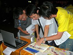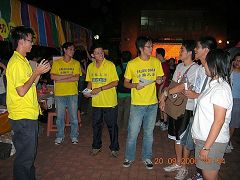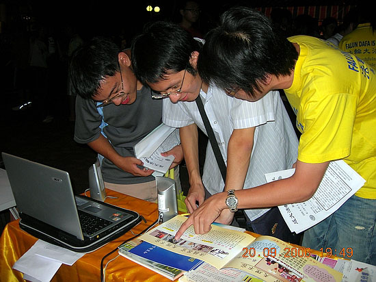 【明慧网二零零六年九月二十七日】台南成功大学于二零零六年九月廿、廿一日举办为期两日的社团联展迎新活动,法轮功研究社共襄盛举,希望透过社团博览会能让全校师生认识法轮大法的美好与了解法轮功无辜遭受中共迫害的真相。活动中,学员们为观众合唱“为你而来”,欢畅的歌声传递出法轮功学员坚忍不拔的胸怀与让中国人了解真相的急迫,歌声围绕整个博览会,全体师生沐浴在大法的美好里,学员们也展示法轮功五套功法,一一介绍功法的内涵,希望能让全校师生更进一步了解法轮大法的真谛。