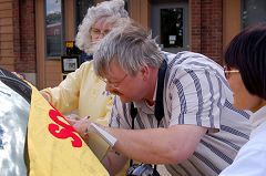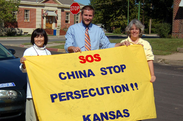 ![]() 市民Rural Kansan在紧急救援的横幅上签名呼吁制止迫害 |