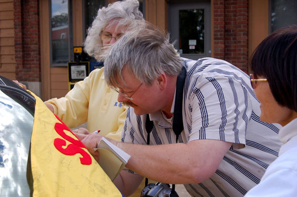 一个市议员听了电台播出的有关堪州汽车之旅的新闻后,当天就将他所听到的告诉了市议厅的全体人员,并且要求市长褒奖法轮功学员们。很多居民听到中共活体摘取器官的暴行后,非常震惊,毫不犹豫的在横幅上签名。
