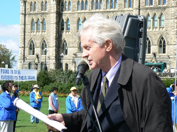【明慧网二零零六年九月三十日】(明慧记者冬娜报道)二零零六年九月二十六日,法轮功支持者和多名国会议员在加拿大国会山前集会,呼吁加拿大政府和人民共同制止中共活体摘取法轮功学员器官的罪行。前任亚太司司长、前资深国会议员大卫•乔高到场支持并演讲。之后乔高接受了记者的采访。