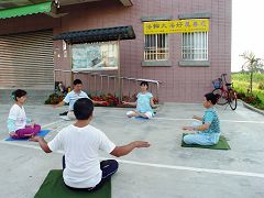 这个新兴、迷你炼功点每天约有五、六位学员一起炼功,有附近乡公所的公务人员、补习班老师、学校教职员等。最近因暑期教师研习营的机缘,又有一对做生意的夫妇一起加入炼功行列。暑假期间,附近的三、四个小学生也主动来学功,比划起动作来,有模有样,真是可爱。