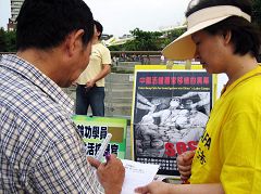 有位太太听了法轮功学员的说明后,又带着她的几位朋友来听,她说:“这件事应该在媒体大量曝光,让更多的人知道。”另一位太太马上跟着说:“对!我们回去要告诉所有亲朋好友,千万不要到那边换器官,这真是杀人造孽啊!”
