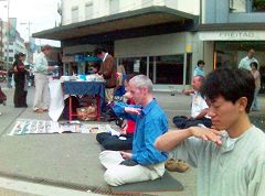 二零零六年九月二日,瑞士法轮功学员在本国的德法双语区Biel举办了洪法讲真相活动。