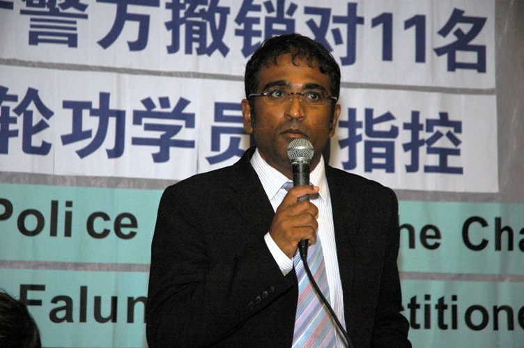 【明慧网二零零六年九月六日】新加坡法轮功学员中领馆前抗议案的辩护律师拉维,于二零零六年九月一日在新加坡富丽华酒店召开公开听证会,详述法轮功学员在法庭遭受的种种不公正待遇。
