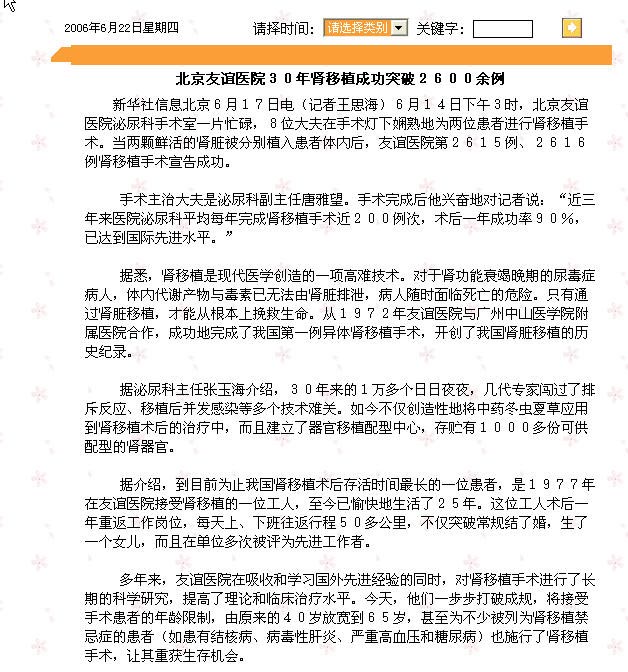 • 调查线索:北京友谊医院近3年平均每年完成肾移植近200例
