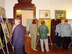 展出的四十幅绘画深入而真切地展现了法轮功学员在中国无辜遭受迫害的真相,很多人从其它地区赶来了解真相。通过欣赏由四个部份组成的画展,人们对法轮功、法轮功学员以及中共对法轮功迫害的残忍都有了很深的印象。同时人们心中也充满了希望,因为就象艺术家张昆仑在他的作品中展现的一样,中共的红墙已四分五裂,而且很多作品都体现了善有善报、恶有恶报的道理。