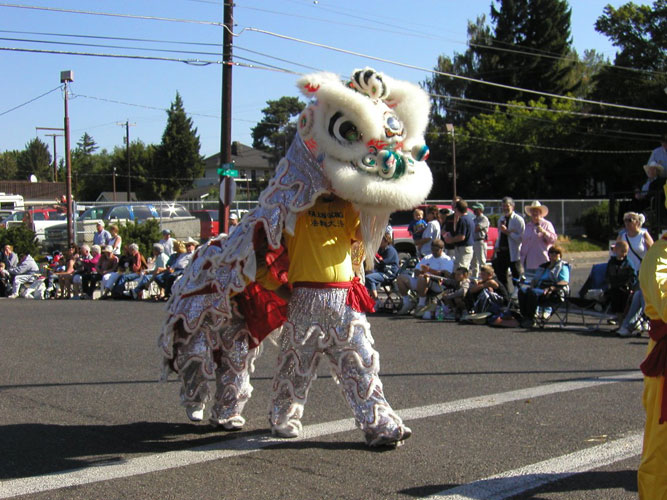 ![]() 学员的舞狮队给沿途的观众带来了欢乐 |