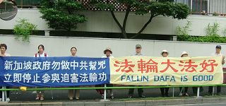 七月二十日,三名法轮功学员在中共驻新加坡大使馆前拉开横幅“720绝食抗议中共灭绝人性迫害法轮功”,后被警方以“展示侮辱性文字进行骚扰”的罪名控上法庭。这一案件八月廿八日在新加坡初级法庭开庭审理,到九月一日暂停,第二阶段的庭审将在九月廿五日开始。