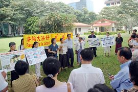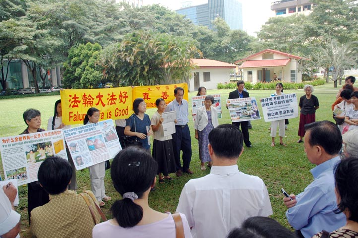 ![]() 法轮功学员在新加坡“芳林公园”的演说角落召开记者招待会,强烈要求政府撤销无理起诉 |