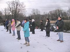 ![]() 新唐人电视台记者现场采访法轮功学员 |