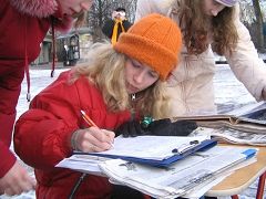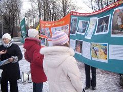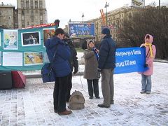 一月六日上午,法轮功学员们还同时在市区的两个地点举行了集会。揭露中共七年来残酷迫害法轮功的罪恶,特别是活摘法轮功学员器官牟利的法西斯暴行。学员们向路人派发了很多真相资料 。深受共产邪党之害的俄罗斯人,非常理解和支持法轮功学员反迫害的正义之举,很多民众不但接收了真相资料,还向学员详细了解情况。明白真相后,人们都谴责中共的罪行,并签名支持法轮功反迫害。