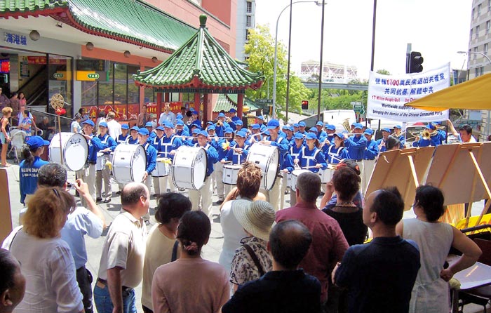 ![]() 天国乐团首次现身唐人街助阵声援 |