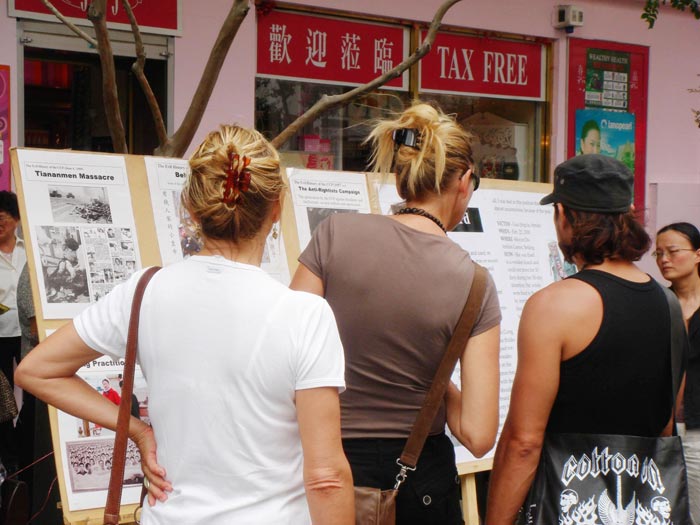 在集会现场还举办了披露中共迫害广大中国民众的真相图片展,令众多路人驻足观看,了解真相。其中中共对法轮功学员惨无人道的迫害,特别是中共活摘法轮功学员器官的暴行,让善良的民众都感到震惊,纷纷索要更多真相资料以及呼吁明信片,表示要寄给澳洲政府呼吁帮助制止迫害,支持澳洲的独立真相调查团进入中国对中共活摘法轮功学员器官展开调查。