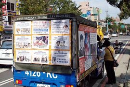 ![]() 载满真相展板的宣传车在附近街道上行驶,向人们揭露中共对法轮功的残酷迫害 |