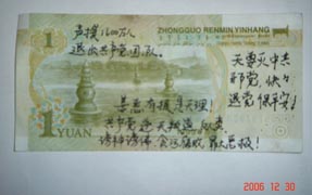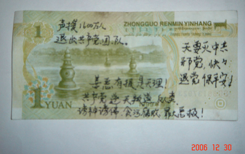 图片报道:西藏的退党标语、写有退党信息的纸币