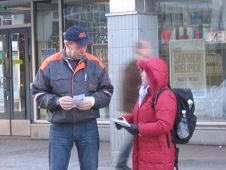 法轮功学员王芳在头一天得知母亲在中国东北再一次遭警察非法抓捕和抄家。她告诉自己要坚强,更要告诉芬兰人民她的妈妈就是一个普通的法轮功修炼者,想要按真善忍做好人,却在遭中共一年非法劳教迫害后再次被绑架。残酷的迫害每天都在大陆的许多法轮功学员身上发生着。只有揭露邪恶,才能制止迫害。当她一边向人们递传单一边讲诉时,一位老人给她出主意说:应该把你妈妈的事情写出来,到芬兰国会、到媒体、到警察局、到国际上去说,告诉他们这些残酷的事情正在中国发生着。一位芬兰女士问:你需要钱吗?我可以给你。几位小学生则表示无法理解,警察不是只抓坏人吗?中共的警察为什么抓好人呢?